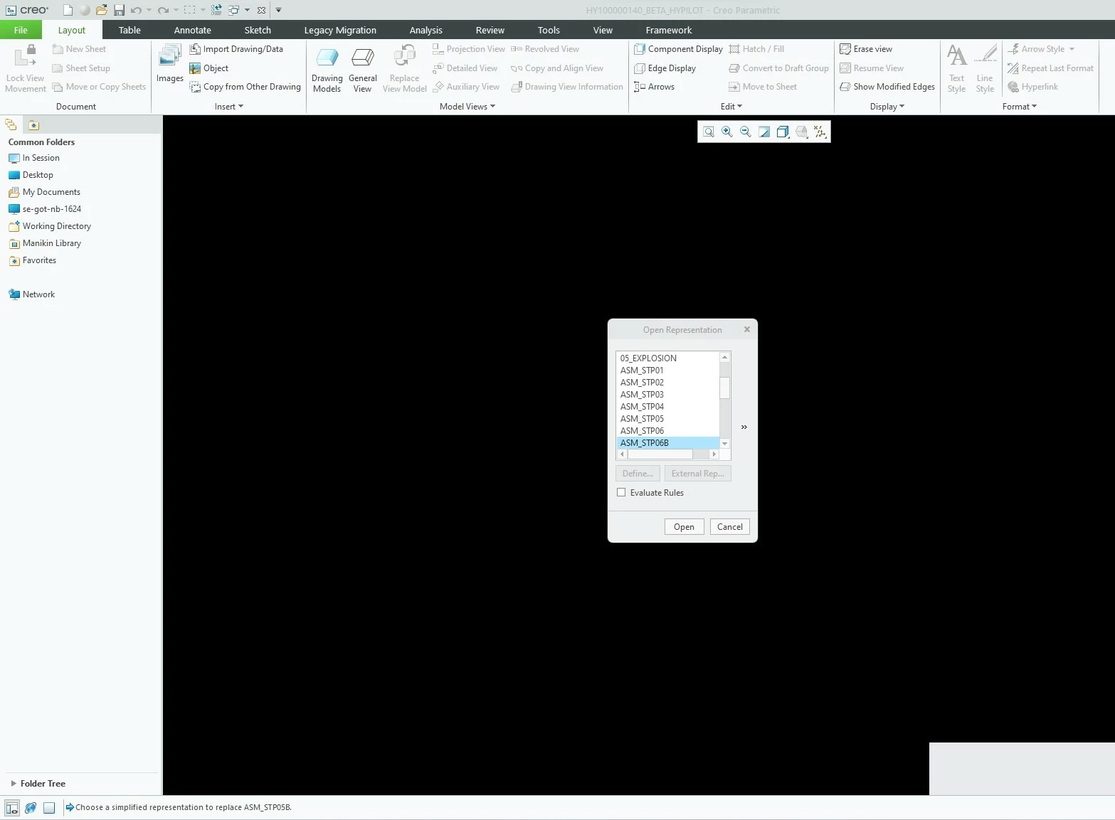 Normally when I open a Assembly file I've to pick one of my representations before and that's ok but when doing a drawing file I've never picked a representation at the beginning because I've multiple of them display in the different slides.