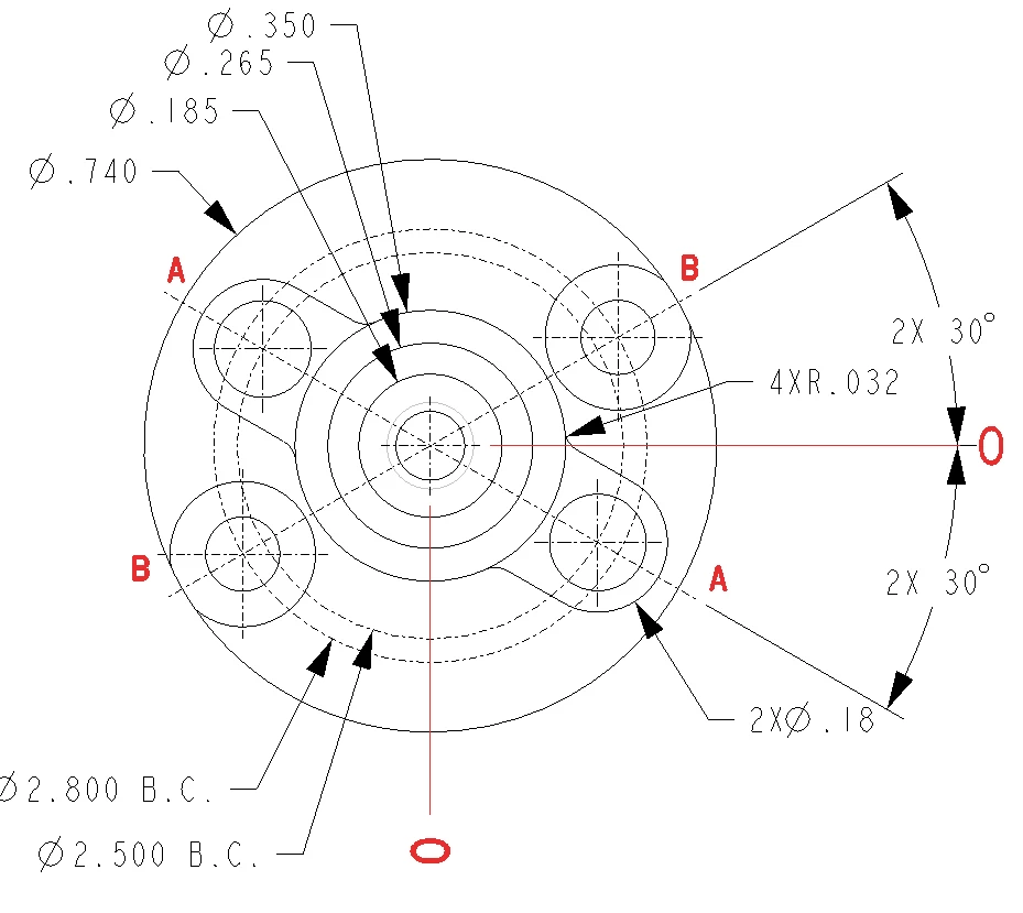 I wanted to dimension the part attached and use Bolt Circles for the two different holes. I tried using "Show Model Dims" and bring in the axis and dims. Well one feature was created using a circular pattern - and the other was two separate features (I did not create this model). I figured out how to display a circular centerline by changing drafting settings - but when I brought the dimension in it was a Radius. There was no way for me to change this to a Diameter. So, I decided to create my own sketches in the view and decided to just dimension to this directly. I'm sure people will say, "That's not how CREO works - you create in model and then bring in the model features/dims" Sure - but when it doesn't show what you actually want - I want to have other options/features to present the dimension how I want it. Well, when I placed the two Dimensions it doesn't scale to the drawing view. The 2.800 dia should be 0.560. The 2.500 dim should be 0.500 (as you can surmise - the scale of the view is 5X).. Why doesn't CREO scale secondary dimensions on sketched features??? When I click on physical geometry the dimension scales appropriately (which should be expected). Why does this happen - and is there a way to fix this?????