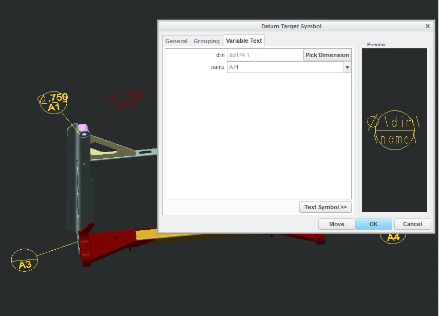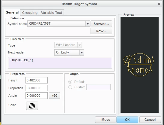 I am curious to know if anyone has found a solution to diameter datum targets, outside of creating your own symbols. The issue I am most curious about is that when creating Datum targets, the symbol is not large enough to house the dimension. It has no auto scaling functionality, and appears to have no options to make the symbol larger. If you adjust the height, it scales the whole symbol and not just the text.