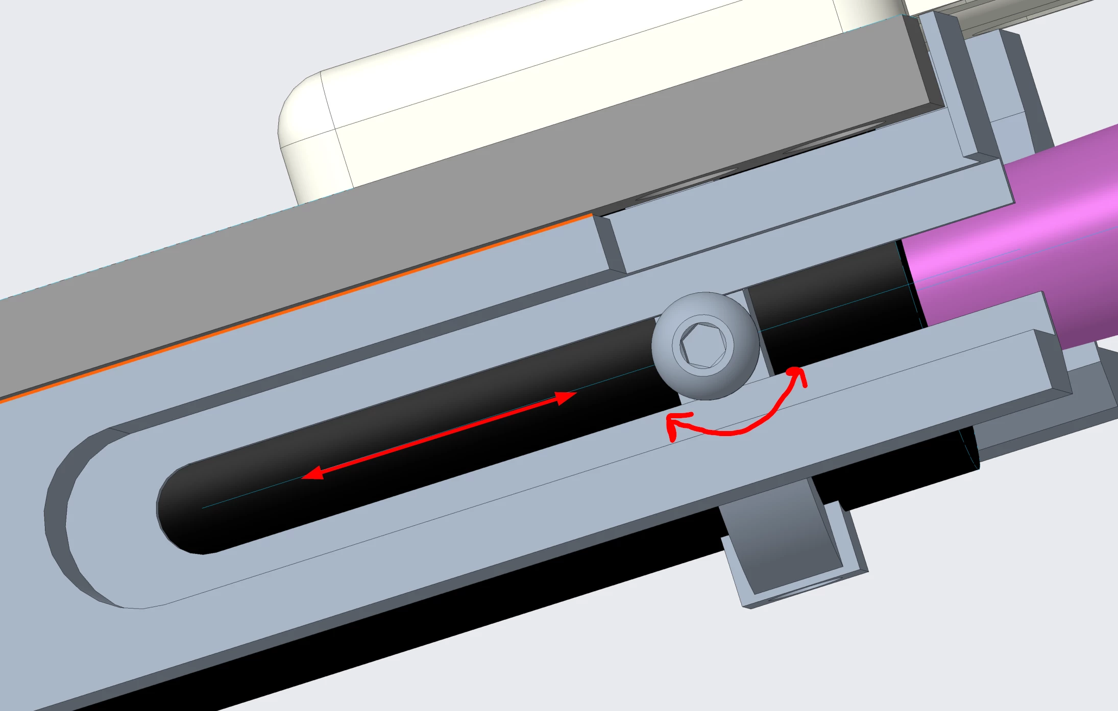 Thanks for your suggestion! I tried the slot connection, creating a point on the center of the screws head diameter and then I have set Point on Line to a straight line on the slot, however, when I move the part using the Drag command, the part moves around in all axis from the start to the end of that straight line.