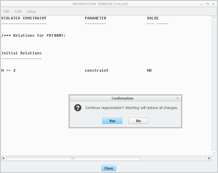 Is it possible to have an error message window pop up in a regen? I'm creating a drawing that takes user inputs and updates an assembly/drawing, but I want to have some built in failsafe so if the part does not fall within my program that it will tell the user.