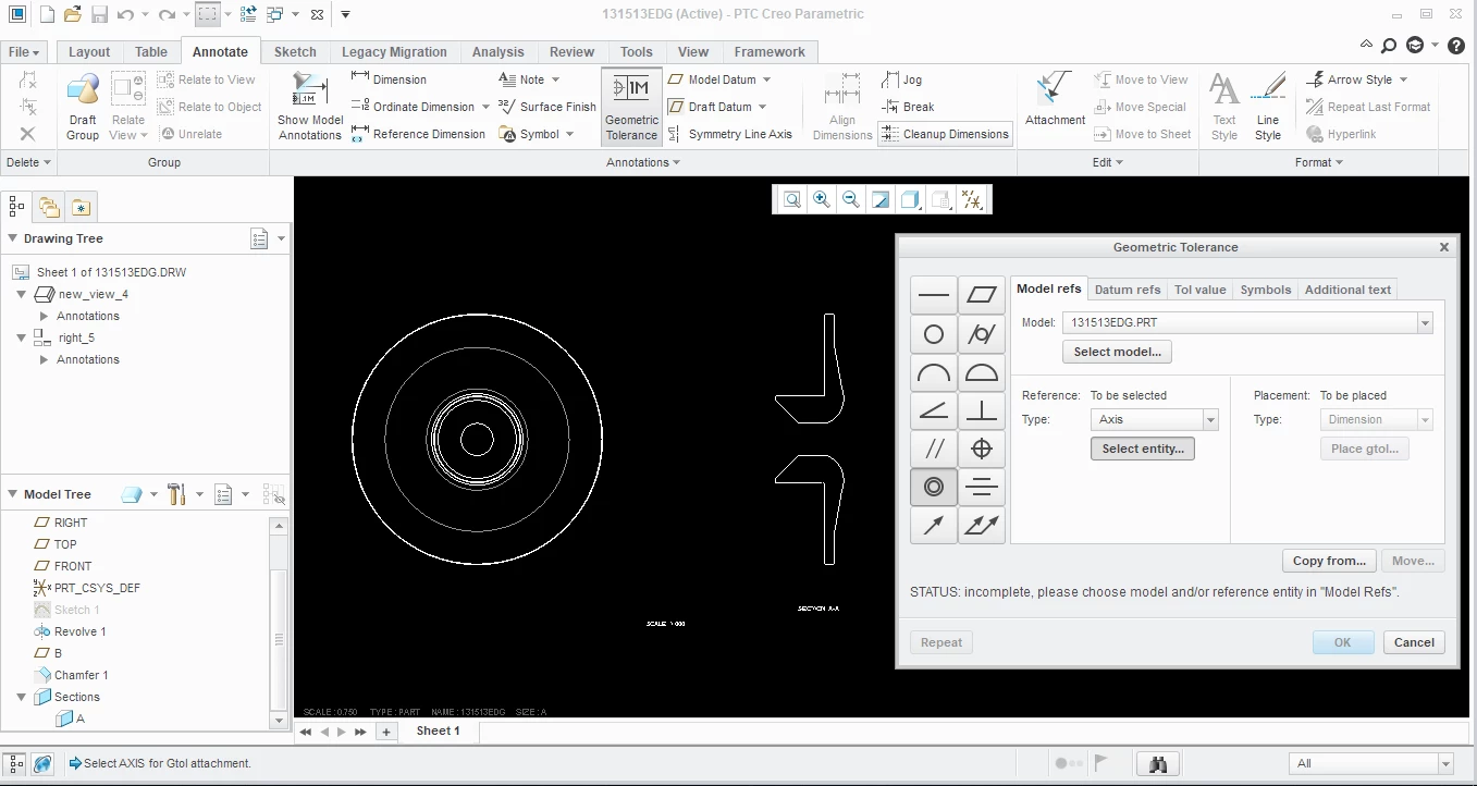 Creo 3.0 Geometric Tolerance window freezes when "select entity" button is pressed