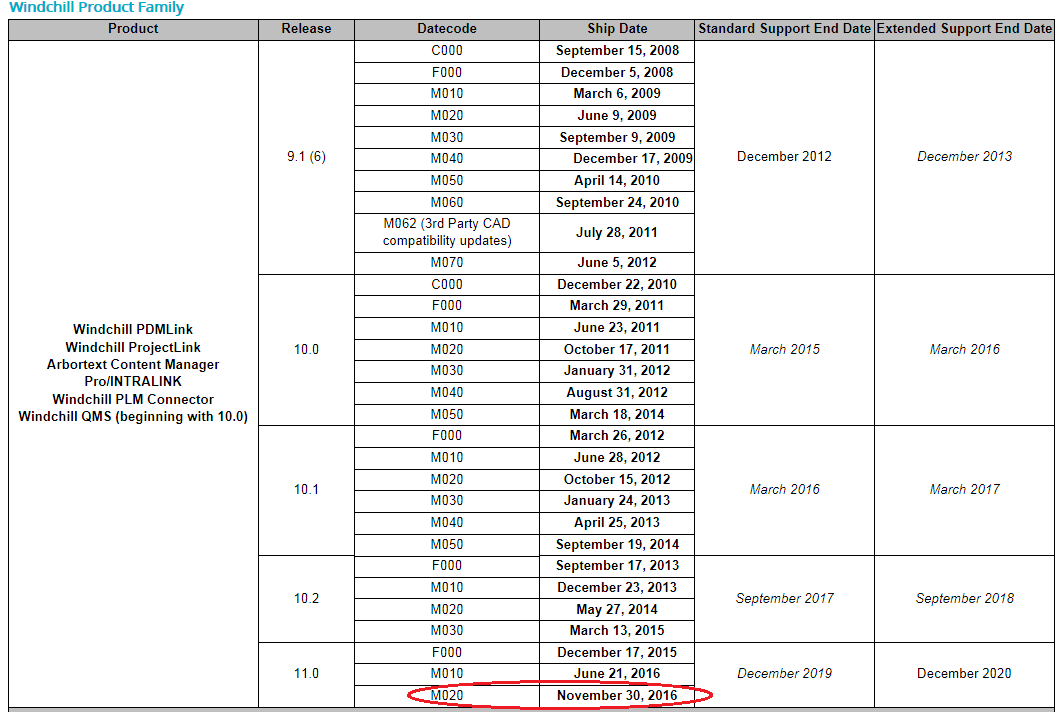 http://support.ptc.com/WCMS/files/67180/en/CreoWindchillCompatiblityRoadmap_11292016.pdf