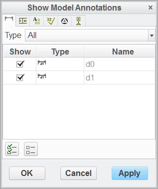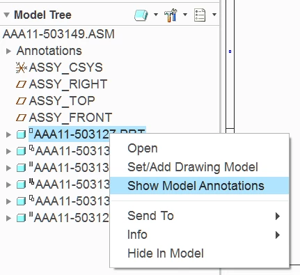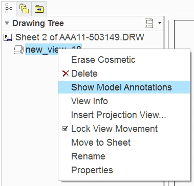 Creo Drawings, Show Feature Dimensions by View from Model Tree