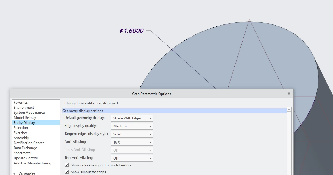 Note in the attached images that a "Medium" edge display quality on a 1.5" diameter cylinder is acceptably smooth in Creo 6 whereas the "Medium" edge display quality for the same part in Creo 8 is unacceptable. Of course, there is the option of "Very High" in Creo 7 & 8 also result in unacceptable edges.