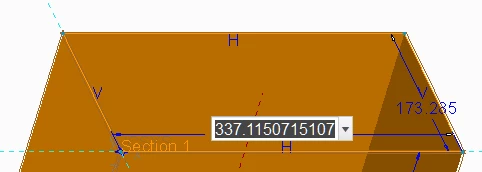 4. Measure the three lengths. The displayed values were 337.115, 173.235, & 216.506.