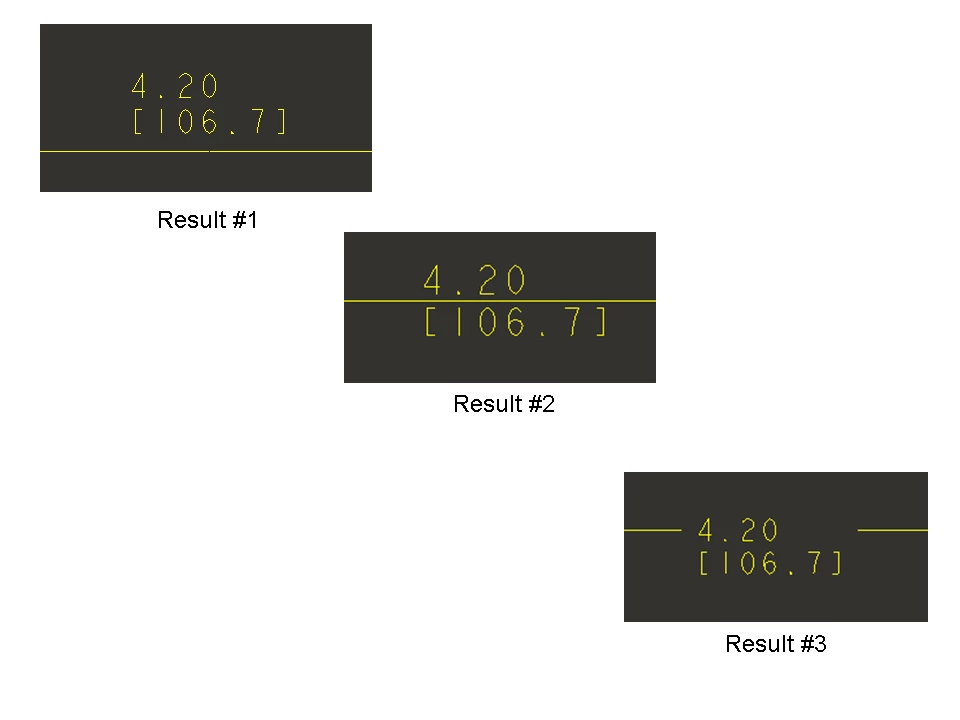 To modify these options, go to File>Drawing Options when in drawing mode. The settings used to achieve each picture are listed. For all examples ENGLISH is set to be primary and METRIC is secondary.