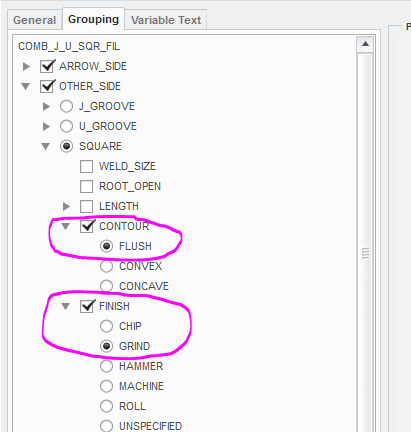 If I use this weld symbol (Contour-Flush / Finish-Grind), the distance between the weld and the Grind is too great.
