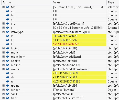 I want to retrieve bounding box dimension of a model. I use IpfcSolid.Evaloutline(), but the return value dosent reflect the actual size. I have attached the image of results for 600X325X10 outline calculation. Kindly throw some light why there is a deviation. This is not the same when I use IpfcSolid.Geomoutline().