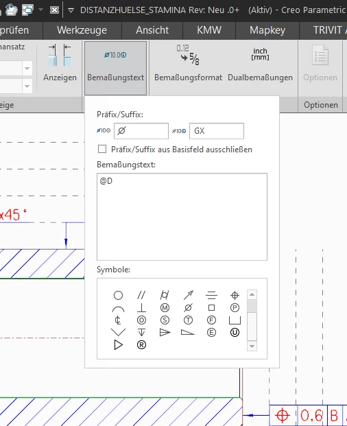 I would like to add the symbols GX, LP etc. in the symbols of the dimension text, as they are not present. Where do I get these symbols according to ISO GPS and how can I make them available in Creo 4?