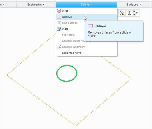 body{font-family: Geneva,Arial,Helvetica,sans-serif;font-size:9pt;background-color: #ffffff;color: black;}Pro Users,Though there are assumptions that always need to be made, I've been a little surprised at some of the responses to this request. The original post and picture showed a set of surfaces with a hole through one of the surfaces. It appears that the surface with the hole in it is flat, though that could be an illusion.The answers about "extrud up to surface" were assuming this was a solid. The post and picturetalk about and show a surface with no thickness.Extrusion won't work here.If it is truly flat, there are manysolutions, one of which is: edit>fill, use the plane that the hole resides as your sketch surface, use the edges of the hole as your sketch, done. Then merge the original surface with the "fill" and you get a perfect surface with no evidence of the hole. This method won't work on a curved surface, so this is not as helpful as the one below.If the surface is curved, or worse, convoluted, there are several good solutions and many bad ones. The easiest is Copy > Paste the offending surface, and use the "exclude holes" option to eliminate the hole. Then you have to merge the new surface back in to replace the one with the hole in it.Another method is to copy the surface, trim it back past the hole, extend it across the hole, and merge it back into the original surface (this was the method before the "exclude holes" option exsited).The methods suggesting "put a line across the hole, make 2 boundary blends, merge the boundary blends into the original surface" are a bit hokey. While Pro/E has improved assumptions, and on a flat surface the patch will not show (in the old days the boundary of the patch would show, even ona flat surface), on a curved surface it WILL show because the boundary blend is not the same as the original suface. It is a fake solution. Take a look at the attached image to see what I mean. The left is a "boundary blend" solution, on the right is a "copy, paste,exclude holes" solution. If you want a solution that works no matter what type of surface you're dealing with, use the copy>paste.If the hole cuts across multiple surfaces, this becomes even more important, and the boundary blend even more troublesome.Regards, Jeff--Jeff Sampson -