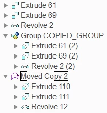 Which command should I use to replicate the "Group COPIED_GROUP" in the model tree in the attached image.