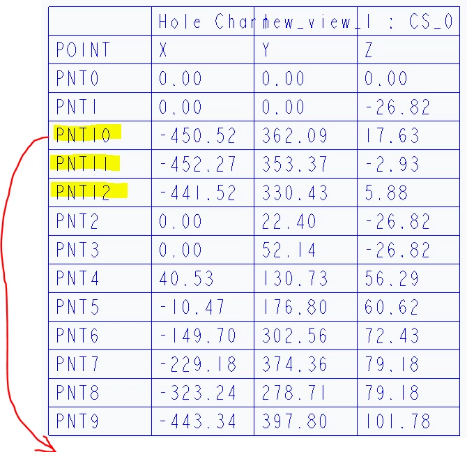 I am creating a hole table through datum points like feature name "POINT" & its "X,Y,Z" measurement through cs_o but when datum points go beyond 9 for e.g. "PNT9" then it sort by again first digit means it will go like 1 then 10,11,2,3,4 likewise (refer snap for more details).