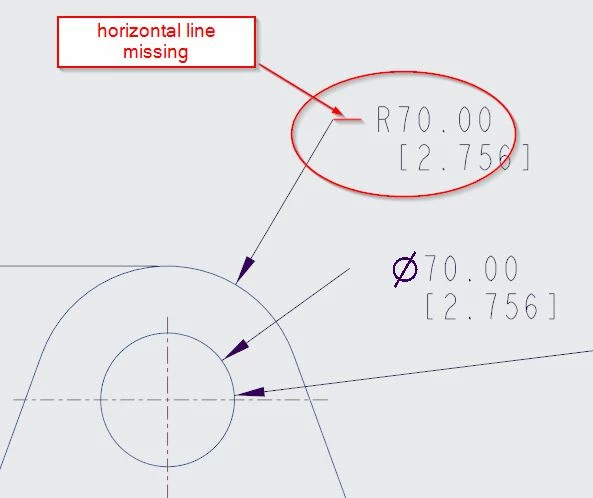 However still in diameter and radius dimensions the horizontal leader line is missing. See attached image. I have highlighted in red.