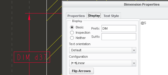 For a dimension set to @S, you should be able to just click the basic radio button in the display tab for the dimension properties.