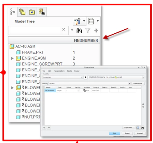 Notice that the findnumber parameter is a component parameter, and they are showing that parameter in the model tree.