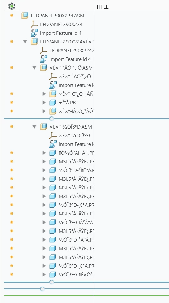 When I import a STEP or IGES file the tree in inaccessible and the import gives crazy characters when loading and after loading. I can make planes and features but nothing shows in tree. Now it even does this when I load an assembly that used a STEP or IGES that i used in a previous design. I'll attach some screen shots to show you what I mean. Any help appreciated.