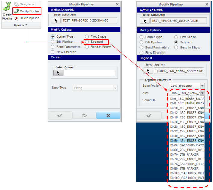 2 / Modify Pipeline => Segment => Segment Parameters => Size => i need to rechoose DN40 from the list shown