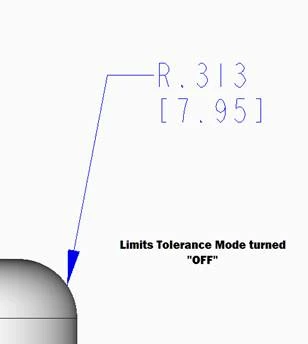 And finally, if we turn off "LIMITS" Tolerance Mode we get the radial "R" callout back where it belongs