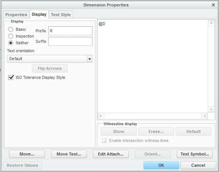 We're running Creo 2.0 Parametric build M030. When one of our users was creating a parametric note for a radial dimension, attaching it to another view, the orientation of the radius callout "R" moved in the dimension - instead of being at the beginning it moved into the center.