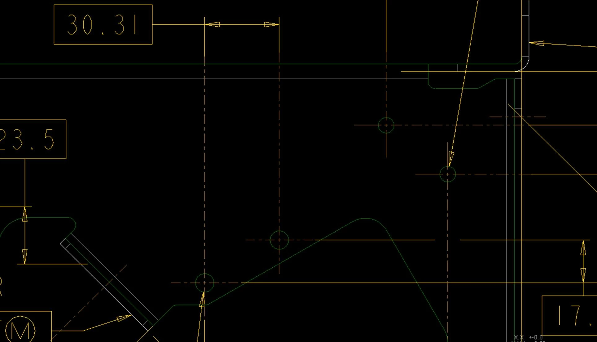 At this new job I started at recently, I'm taking ownership of parts which need additional design and drawing work done on them before they can be released for production. Often these parts will have completed prints from the previous revision I work from. I'm seeing a lot of the above practice and I find it extemely iritating for some reason. I feel compelled to change the centerlines back to how they might look in their default condition and move the dimension extension line with it.