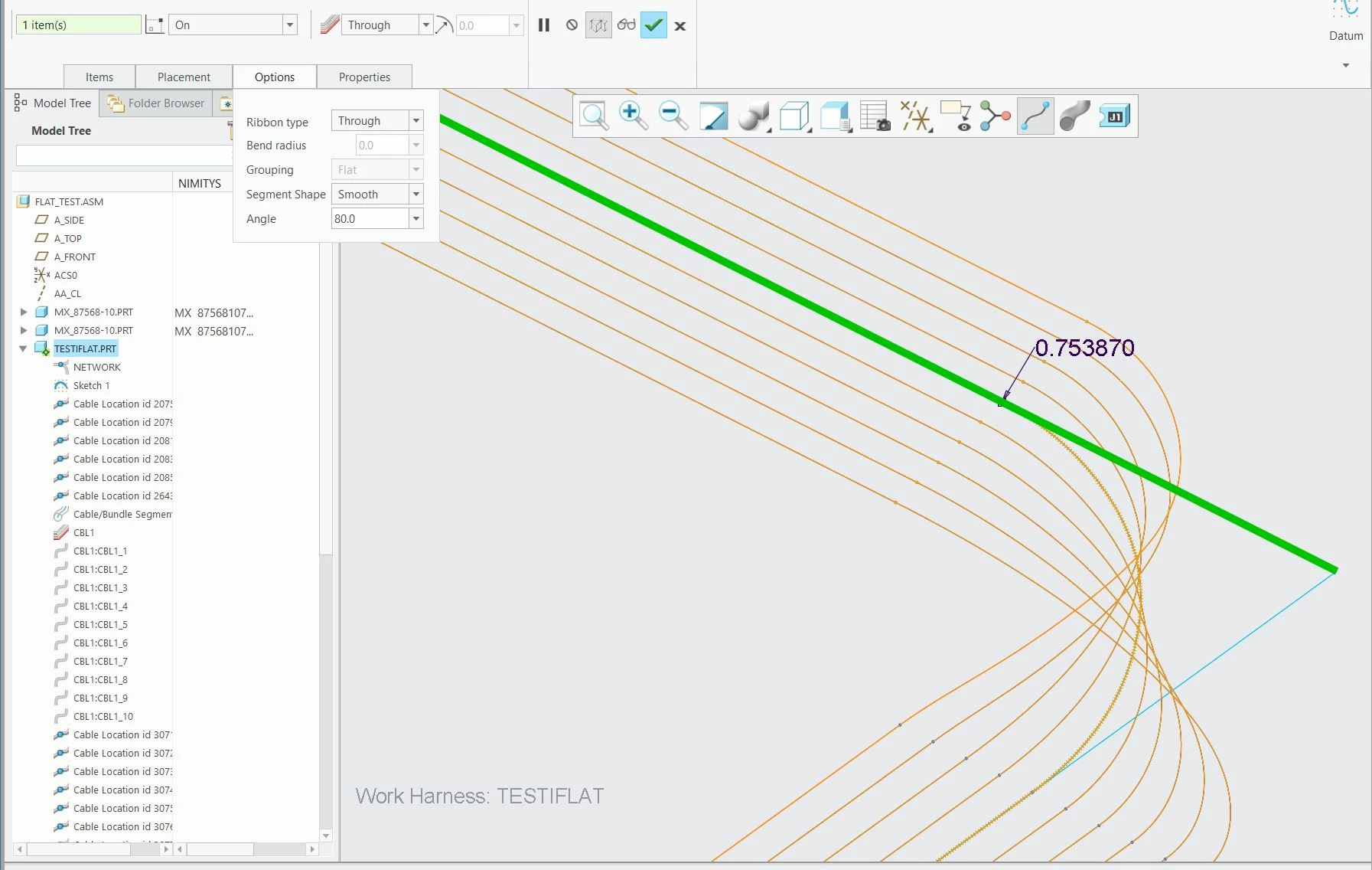I am trying to get a ribbon cable to route properly in an assembly, unfortunately I am not finding much info on this topic in the help files, this forum, or googling in general. I was able to get a spool set up and route some simple cables that are mostly straight with some ups and downs. Now I need to route a cable that makes some right angle turns by folding the ribbon.