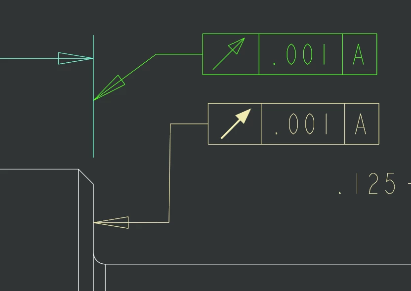 So I've been working on a very simple part with some GD&T callouts and have now encountered my fourth issue trying to do basic annotations (Creo 6). This time, I've noticed that attaching a runout callout to a surface results in a filled arrow in the feature control frame (I'm not talking about the leader arrow). When attaching to a witness line extending from the part object line, the symbol in the feature control frame turns into a stroked arrow. See attached image. This is frustrating because attaching to the witness line is the only way I've found to enable a gap between the FCF and the object line when placing the FCF against a surface.