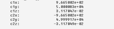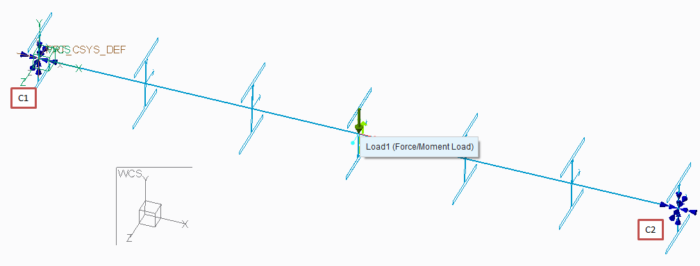 Define x,y,z, constraint reaction measures for C1 & C2 and we get the output :