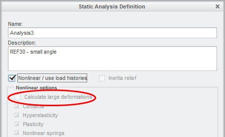 So off we go into Large Deflection Analysis world. There is no LDA for beam only models or models containing beams