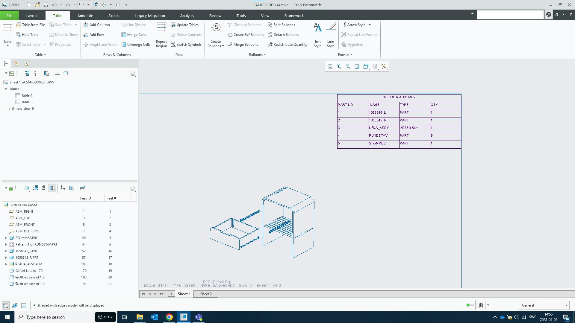 I am learning Creo 9 and are trying to make a BOM list with balloons to the assembly. However, I am unable to add balloons. I press on create balloons - all, and nothing happens. No error message and no balloons! I attach a picture.