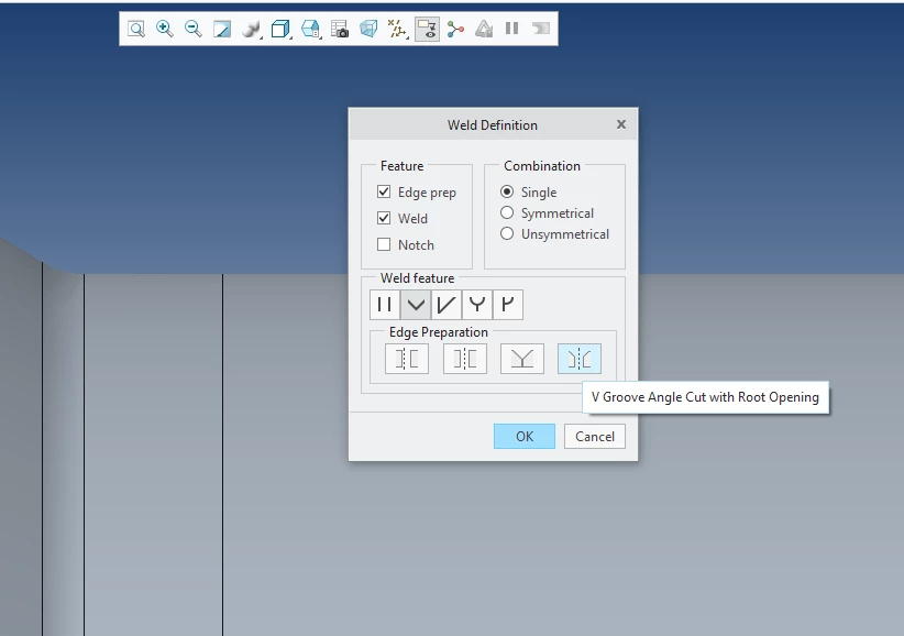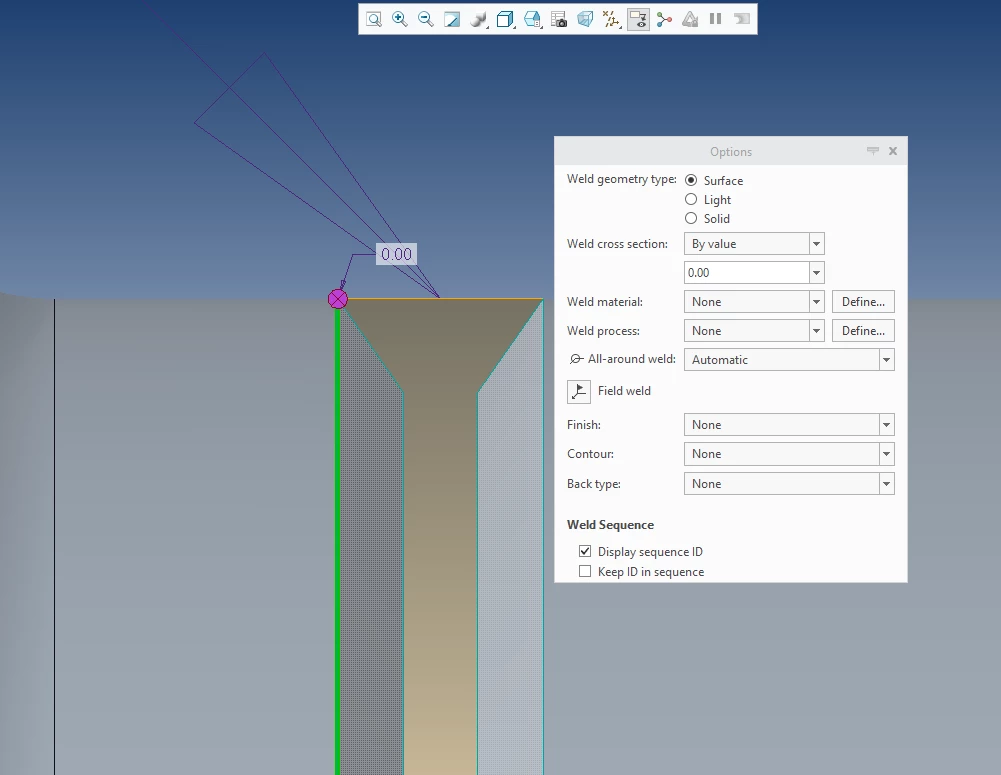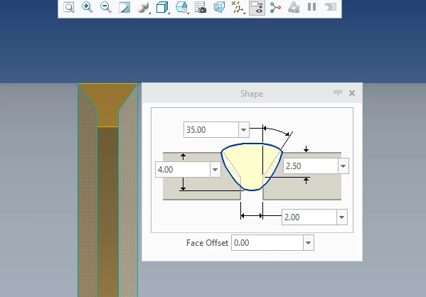 I have an issue: Two pipes with straight edges (i.e. not prepared edges) are connected to each other. By using the Weld Wizard I create preparation with the following parameters: 2 mm root opening, 2.5 mm depth and bevel angle of 35°. Everything works well except that the weld being created as a surface. When I choose "Solid" in "Weld geometry type" Regeneration failure message pops up. How do I get Solid weld type?