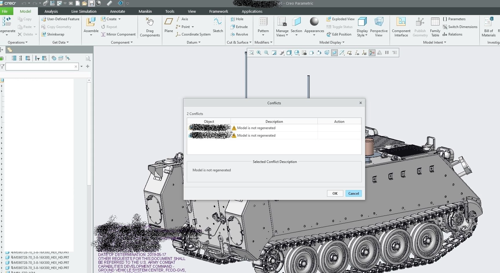 •prompt*—Displays the Conflicts dialog box. The Conflicts dialog box informs you that the model is not regenerated.