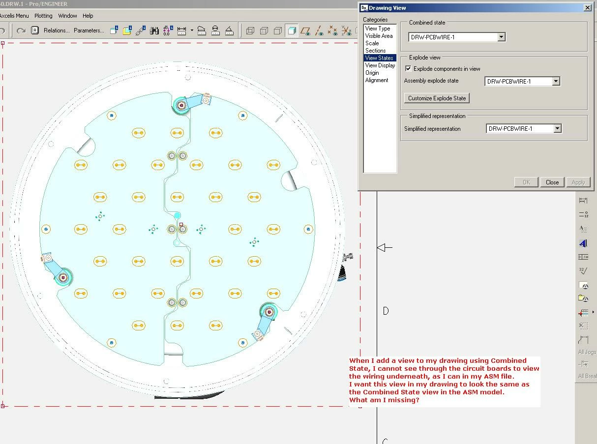When I add a view to the drw file using (or changing to) the Combined State, I cannot see through the circuit boards to see the wiring underneath, as I can in the ASM file Combined State mode.
