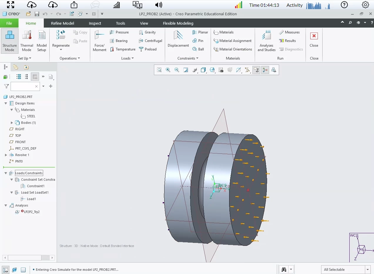 For Creo Simulate: Moment—Specify the magnitude and direction of the moment for your load. Note that moment loads should only be applied to moment capable references such as shells or beams, or the type of Distribution must be Total Load at Point.Select the units of moment from the drop-down list or accept the default units.
