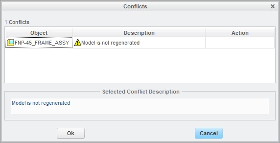 We've "advanced" to using Creo 1.0 here, and I'm beginning to get annoyed by this little warning that seems to pop up every time I save anything. Oftentimes I can hit Ctrl+G to force a regeneration, but the light stays yellow and I get this warning anyway. Is there a config.pro option or something to stop Creo from checking the regeneration status whenever I save?