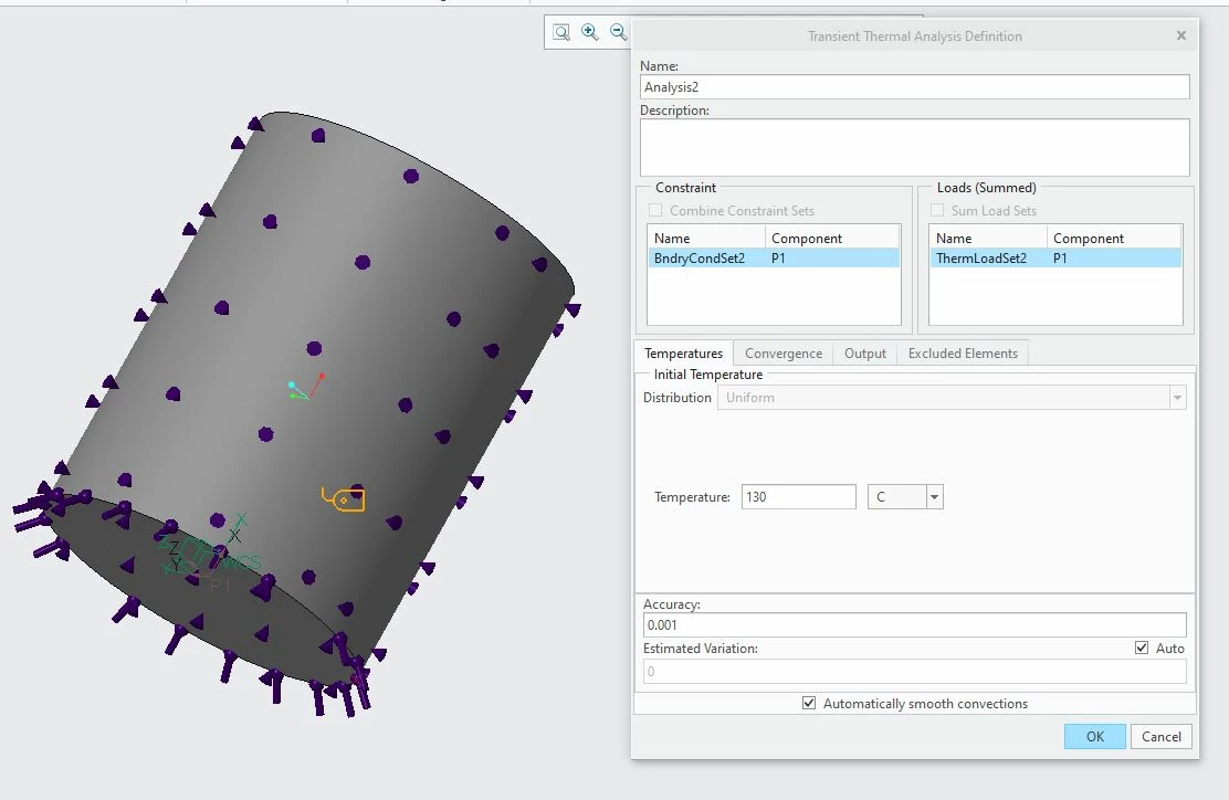 Ffstopelli-214-AlexandriteForum|Forum|9 months agoJuly 1, 2025QuestionCreo Simulate Transient Thermal AnalysisForum|Forum|9 months agoJuly 1, 20252 replies778 viewsHello,i have an aluminium cylinder De60 Di54 L148 [mm]with the attached condition (Condition 1 e 2 . jpg)As a result of the thermal analysis (Thermal_analysis.jpg) i have what show in "Result.jpg" about thermal analysis I'm not sure that is correctCan you give me your opinion about it? Thank youSimulate