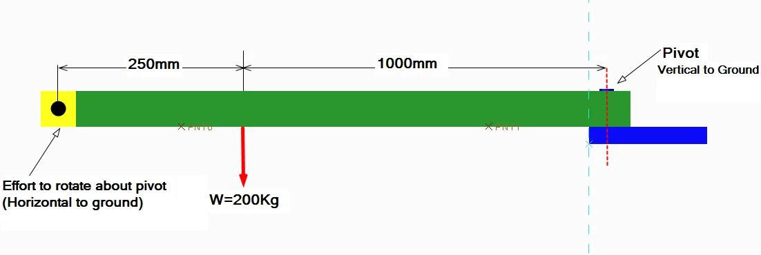 I said its vertical axis pivot. about which platform rotate when someone apply force to other end. Force direction is parallel to the ground. We can take simple example of heavy door (about a ton of weight), which need to rotate about two hinge (vertical axis pivot), and we have to calculate force required at other end to rotate it.