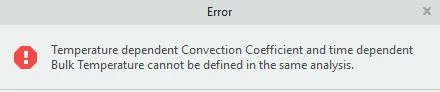 In a transient thermal analysis, for a boundary convection condition, give the possibilty to users to combine temperature dependent convection coefficient and bulk temperature dependent to time. Actually, when we try to define in Creo Simulate a such boundary condition, "Creo Simulate" give us the following message (see please the JPG file)