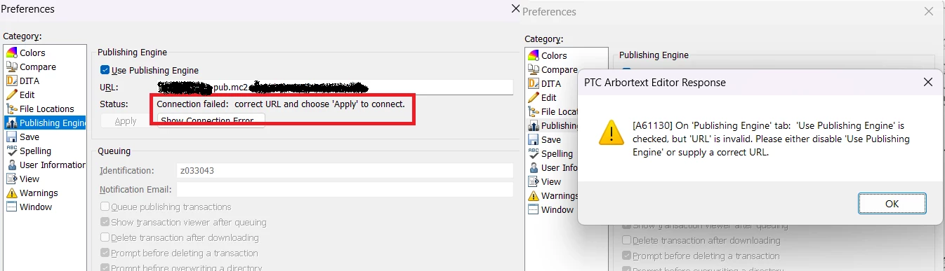 I am experiencing an issue updating the Publishing Engine URL in Arbortext (Tools → Preferences → Publishing Engine). We initially set the URL to an intra-site URL, but now I need to change it to an mc2 site URL. I discovered that the intra-site URL value is specified in the sitepref.xml file on our server.