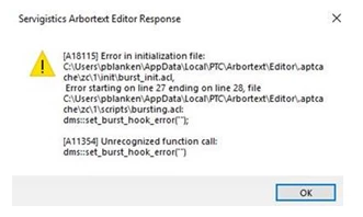 by the looks of things your application is being distributed by a zip file. In the application folder there is a folder named init. The acl scripts in this folder will automatically be initiated upon Editor startup. The first error is looking at the acl in the init folder which is referencing the a line in the bursting.acl in the scripts folder.