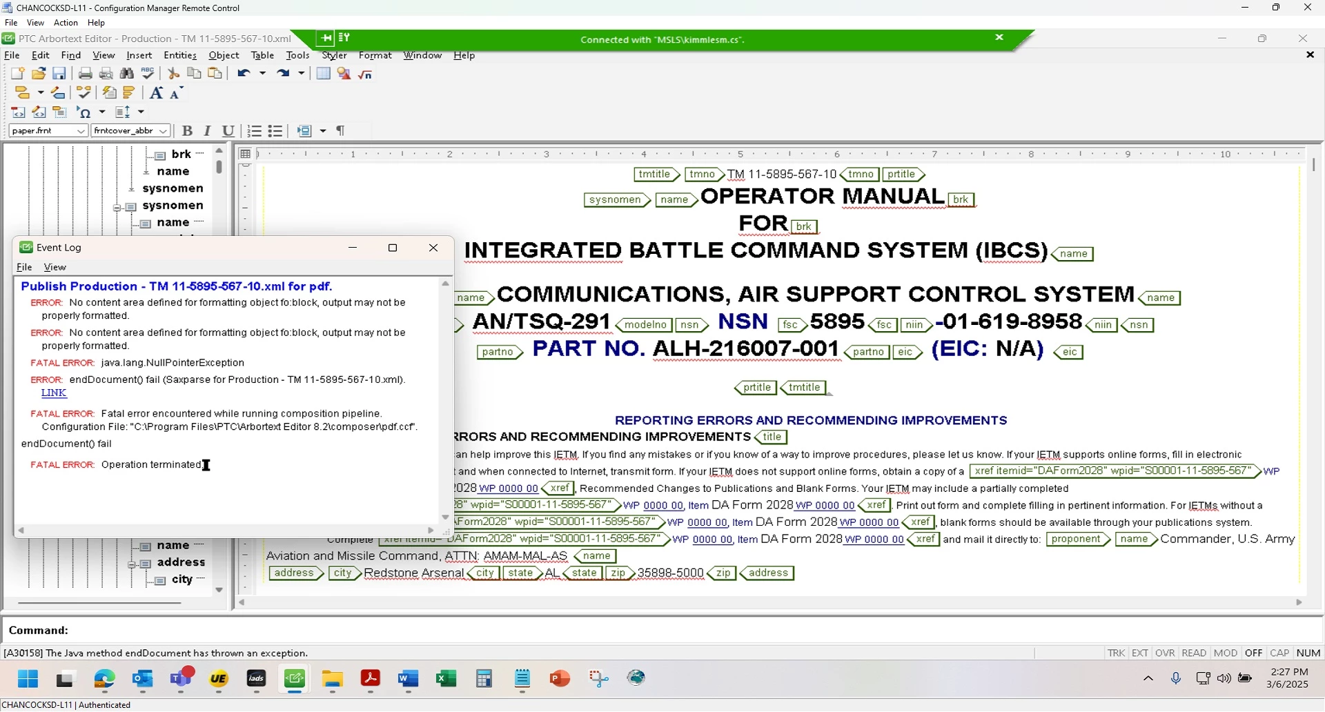 <Level>FATAL ERROR</Level><Message>Fatal error encountered while running composition pipeline. Configuration File: "C:\Program Files\PTC\Arbortext Editor 8.2\composer\pdf.ccf".</Message>