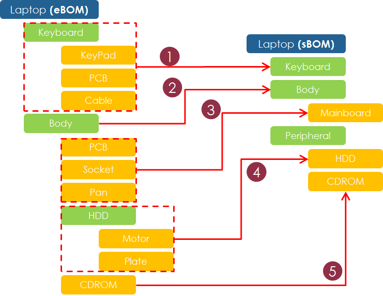 I want to configure sBOM as shown in the bottom figure.