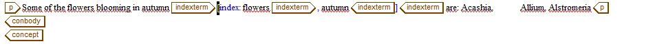 We have been trying to highlight contents around indexterm tag in DITA document. We are having trouble navigating the indexterm tag. The text doesn't highlight properly when we execute ACL function goto_oid with oid of <p> tag and start offset of flowers word. Instead it highlights the text [index: which appears in the indexterm tag before the flowers word (please see attached image).