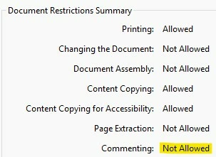 I'm trying to secure PDF documents with an appcf file using the security element, but I want the user to be able to comment on the PDF. The issue is that, somehow even setting noAnnots="no", I keep having the Comment Creation as Not Allowed in the PDF protection menu.
