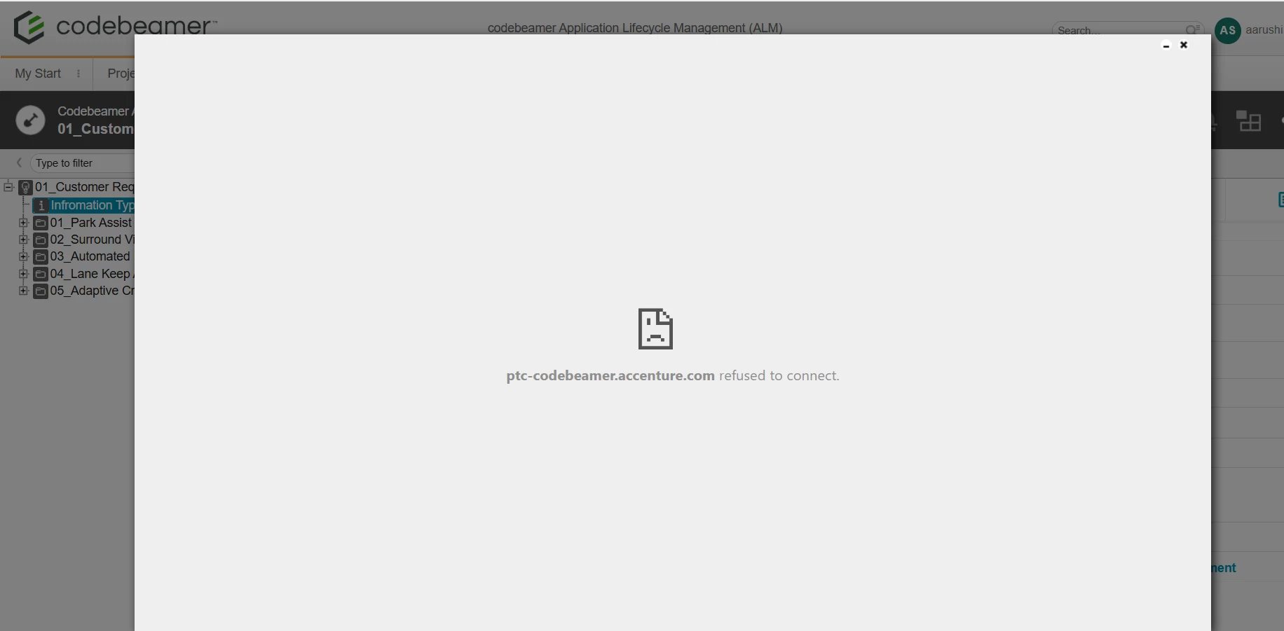 I created a custom choice field to add the links of requirements of same project but from a different tracker. When I try to add it by clicking on the 'pencil icon' then a page appears with error "codebeamer refused to connect".