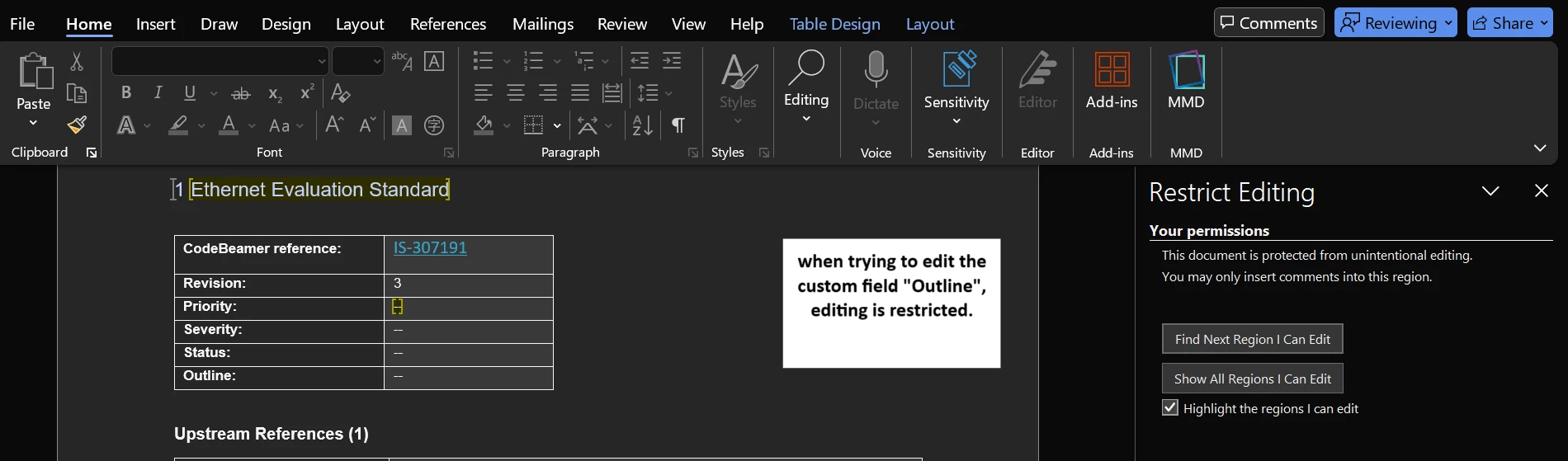 I am doing a word roundtrip in Codebeamer, and I have made a custom template which can fetch the data from custom fields in the tracker.