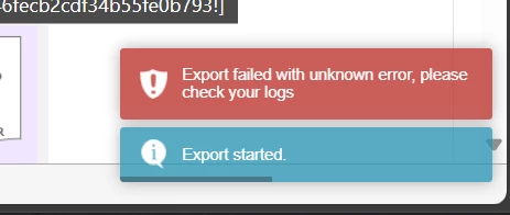 The export option for wiki to word displays the following error "Export failed with unknown error, please check your logs"