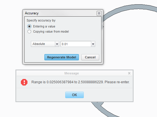 I'm trying to create a radius along an edge 3,000 mm long. I am being told by Creo that I cannot enter a value lower than 0,30, but I would like to use 0,25. Is it to do with the minimum radius setting being a percentage of the edge length? How do I fix this please?
