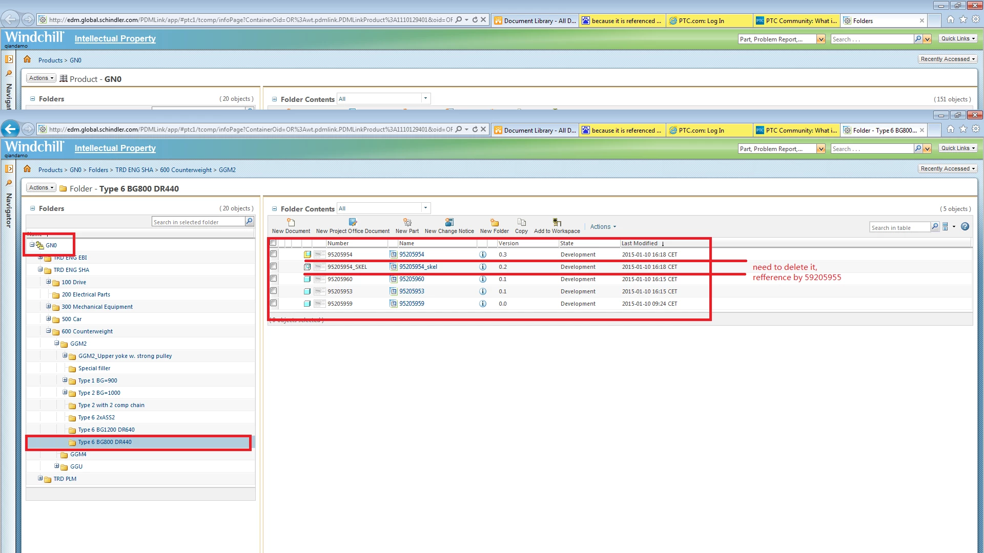 Pptc-67994331-VisitorForum|Forum|11 years agoJanuary 10, 2015QuestionHelp!! how to delete the objects referenced by other objects in windchill?Forum|Forum|11 years agoJanuary 10, 20151 reply1440 viewsHihow to delete the objects located in different folders in windchill? the objects are referenced by each other.GN0----95205955-->need to deleteGN0----Tpye6 BG800 DR4400--------95205954 and other objects--->need to delete95205955 referenced by 95205954,95205954_skelshowed in followed printsreen:Parametric
