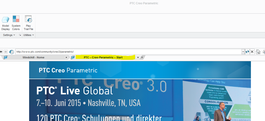 how do I disable the Tab which displays the webpage http://www.ptc.com/community/creo3/parametric/ ?